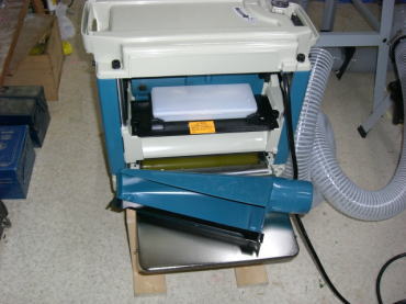 MAKITAプレーナー2012NBは丸亀機械工具で購入。 仕様 カンナ幅304mm 切断材厚3〜155mm 重量27kg 集塵フードも購入しました。 外見的には安定感のある大きさと重量感があります。 |