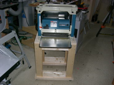 早速作業台を製作してその上に置きました。 試運転の感想は、 この作業台製作に使用してみた限りでは思ったより音はうるさく感じませんでした。 よく言われるハナ落ちもコツをつかめば問題ないようです。 これで、ジョインターとプレーナーの連携ができるようになりました。 |