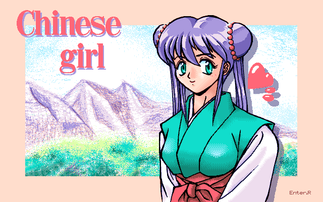 中華な女の子 (96年2月) 一応オリジナルのキャラです。参考にしたものはありますが。 某草の根ネットでCGコンテストを開いたときに描いたものです。 |