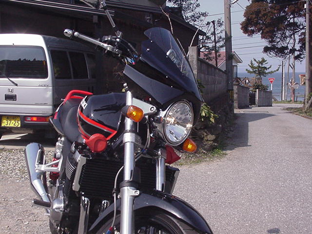 社外品はだいたいライト取り付けボルト二箇所とライト下にボルト締めの三点締めだが スピードの応じてぶれが気になる、しかしこの純正オプションのはハンドル取り付けボルトからのステーと ライトの取り付けの四点締めなのでしっかり付きます これがなんと効果絶大です、取り付けまえの100kと取り付け後とでは 風当たり抵抗が全然違います、非常に楽になりました。ただスタイルが微妙ですが・・・? ライトの下に付けるディフレクターが別売であります。