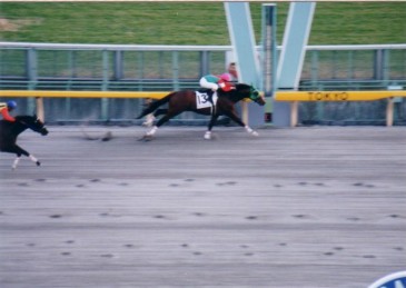 | 1999年10月4日 | なかなか狙い通りのレースに出走できずにいたが、ぎりぎりの抽選で 出走できた地方交流競走のフレンドリーサドル特別にてゴール前の 大接戦をクビ差制して見事、初勝利! 騎手は横山典弘騎手。 |