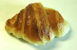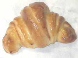 ★ミニクロワッサン クロワッサンの改良版で生地の量を半分にし よりパリパリになるようにし、表面には 砂糖を溶かした塗り卵をして お菓子のように仕上げました。うん!この味好き! |
