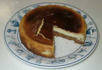 | 2003年2月2日 【メモ:オーブン上下火 予熱あり170℃30分+170℃20分+190℃10分】 予てからチーズケーキは色々な種類を作ってみようと思っていたので今回はベイクドチーズケーキに挑戦! ところが失敗をふたつしてしまいました。一つ目は参考にしたレシピにケーキの下に敷くクッキーは10枚を砕くとなっていたので 10枚砕いたのですがどうやら用意したグラハムクッキーはアメリカンサイズだったのか普通の倍近くあった様子。それをそのまま 10枚使用したので、とてもぶ熱いクッキー生地になってしまったのです。(x_x;) 二つ目の失敗は焼き色が付かなかったのでレシピの設定の30分焼いた後、20分追加し、それでも焼き色が付かなかったので 20℃温度を上げて10分焼き時間を追加したら見事に焦げ&割れになってしまいました。( i _ i ) スフレチーズケーキの時と同じ設定で良かったのかもしれない。 |