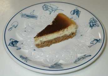 | 2003年3月9日 【メモ:オーブン不使用】 チーズケーキの第3弾はプレーンなレアチーズケーキ。簡単なレシピなのだが、またしても失敗してしまった。(x_x;) 写真を見ても分かるようにチーズの部分に何やら塊が・・・。これゼラチンの溶けなかったものです。 粉ゼラチンを溶かす時、水の量が少なかったため、だんご状になってしまい、そうなってしまってはいくらハンドミキサーで 混ぜても塊が溶ける事はありませんでした。そのためチーズは固まらず軟らかいとろとろのケーキとなってしまいました。 |