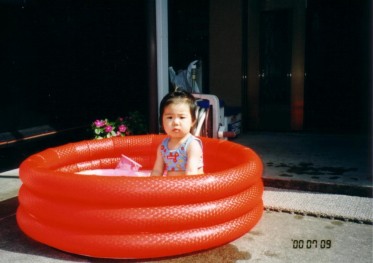 2000年7月9日 プールに入りました。まだ楽しさはわかんないみたいです。 |