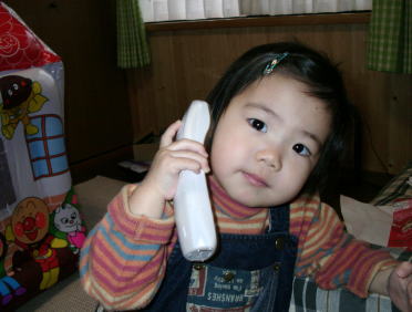 2000年12月24日 「もしもし・・・」電話ごっこが大好き。でも本当に電話がかかると恥ずかしくて逃げ出しちゃいます。 |