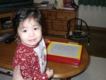 2001年10月07日 初めて顔らしいものが描けました。一応アンパン○ンのつもりです。 |