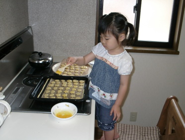 2002年4月13日 得意の塗り卵です。今日はクッキーに塗っています。 |