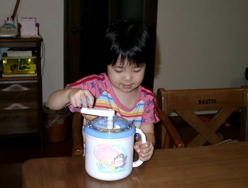 2002年8月14日 今日はアイスクリームを作るゾ!ま〜ぜてま〜ぜてまぜまぜミックス |