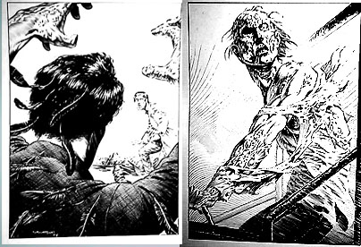好きなマンガ家(ていうかアーティスト、カーツニスト?) のひとりバーニ ライトスン! ポオやフランケンシュタインの挿し絵などを 描くなど、ハリークラークや、ビアズリーの 後継者と言ってもよいと思うぞ。 フランクリンブースの影響も見られるペン画での、 光と影のコントラストと、その怪奇な絵柄。 映画ゴーストバスターズのコンセプトアートも 描いた。実際はあまり使われなかったようだが。 日本では、文庫で出たスティーブンキングの 「人狼の四季」(学研M文庫)の挿し絵で 見ることができる。同じくキングの 「ザ・スタンド」 の海外版でも挿し絵を 描いていたのだが、これは日本版では一枚も ついていない。表紙を手掛けた藤田新策氏が ライトスンの絵がヘンだから、自分で挿し絵も手掛けると 言っていたそうだが、結局挿し絵自体一枚も入っていなかった。 でもいいんだ。あたしゃちゃーんとスタンドの挿し絵の ポートフォリオ(大判のイラスト集)を持ってるから。 2002/1/2 |