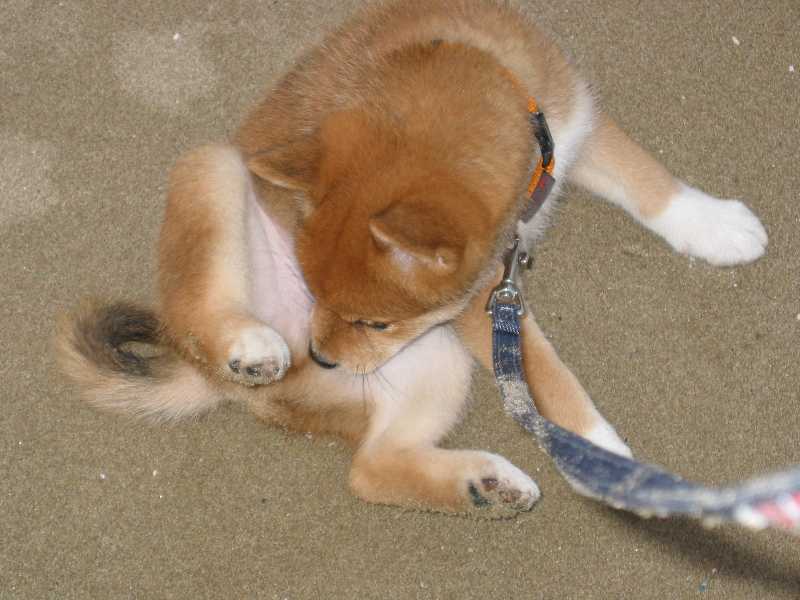 発射!(かみつく) コロタはよく噛みつく。ゆくゆくはコイツも大きくなるのだし、そうなったときに噛みグセがついたままでは飼い主たち人間も、コロタ自身も不幸になる。だからしつけはしなくてはいけないのだけど。 でも飼い主は、子供のうちの多少のガブリは仕方がないかもと思っている。というのは犬の場合、足は体を支えるためにあり、しっぽはふりふりするだけで、自在に扱える部分が口しかないからだ。感情のたかぶりが、まず口に出てしまうのは自然なことだろう。それを叱ってもなあ・・・でも痛いんだよなあ。 |