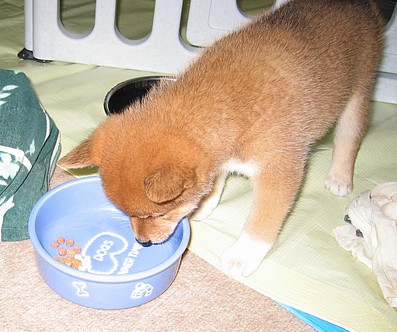 コロタの食事。ものの本によると、もらわれてきたばかりの仔犬は環境の変化にとまどいたいへん緊張しているので、最初の数日はごはんをあまり食べないらしい。しかしそのことはあまり気にせずに、と書いてあったので「なるほど、そういうものか」と思ったものですが、それをあざ笑うかのようなコロタの食いっぷり。 ・・・・・・よいね。 |