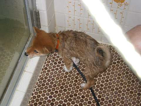 コロタを洗う。 濡れ鼠。 犬だけど。 |