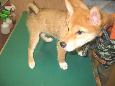 で、着いた先は動物病院。 普段のコロタは誰かれかまわず牙をむき、ナイフみたいに尖っては触るものみな傷つけた、というかんじなのだけど。 このおとなしさはなんだ! 診療室の台にのせられてしまうと、触られても注射されてもじっとしている。そのくせしっぽは振りまくっている。 |