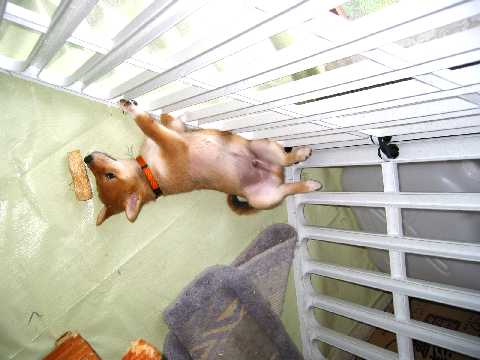 コロタの写真はたくさんある。それこそパラパラ漫画式にめくれば動画になるんじゃないか、というくらいたくさん撮っているのだった。それはデジカメさわりたての飼い主が無闇にはしゃいでいるというのもあるけれど、コロタが日に日に大きくなっていく変化を撮りのがしたくないという思いから、そうなるので。一年もしないうちに犬の体などはほとんどできあがってしまうらしいので、それまでが勝負である。(何の?) そうやって撮った無数の写真のなかから、飼い主が厳選したものをホームページに載せているわけですが。どうですかこれ。「厳選してんなあ」というかんじがしますね。 |