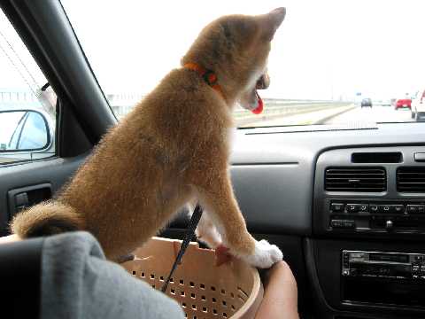 しつけについて思うことは、コロタに「なにかを覚えさせる」ことのほかに、「なにかに慣れさせる」ことが重要なのではないかということ。色々な場所や乗り物、状況。本にも、小さいうちに慣らしておけと書いてある。 今日はドライブの訓練。窓の外を熱心に見ているけど、車が高速で移動していることを理解しているかどうかは疑問。 |